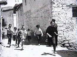 jugando en la calle como posesos. Iban de de juego en juego. Había gran variedad de modalidades. Todas ellas agrupaban a los niños del barrio. Era costumbre jugar por separado, igual que se hacían las clases en la escuela, niños con niños..., niñas con niñas. Andaban en grupos, por la calle, juntos pero no revueltos.